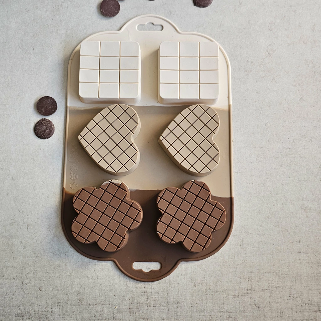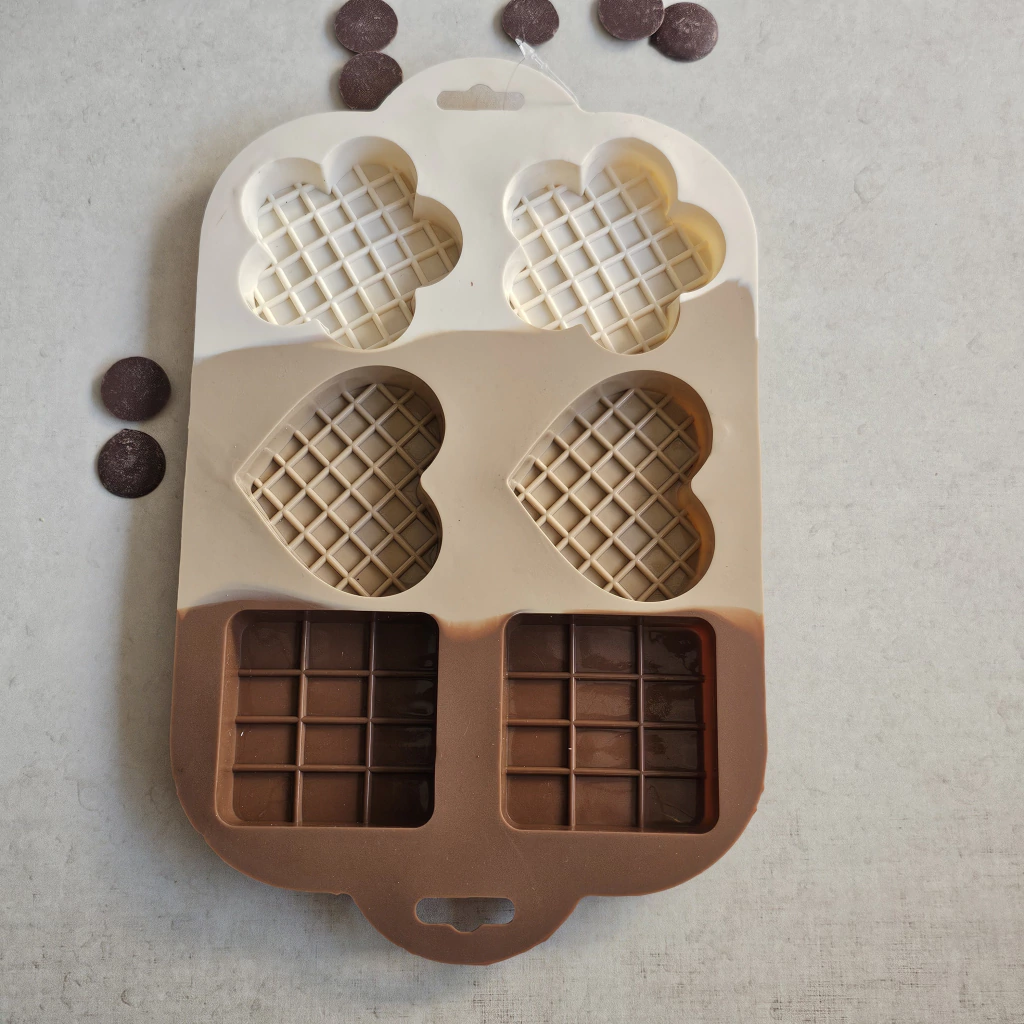 El molde de silicona con 3 formas distintas — flor, corazón y cuadrado — es ideal para tus preparaciones caseras. Incluye dos unidades de cada forma, cada una con un ancho de 7 cm, perfecto para crear piezas uniformes y decorativas.