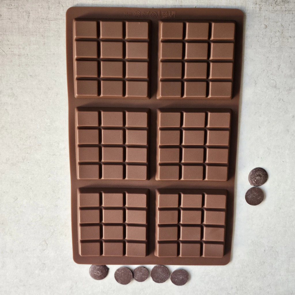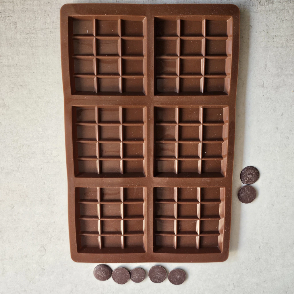Este práctico molde de silicona permite crear hasta seis tabletas de 8 cm x 8 cm, ideal para hacer chocolates