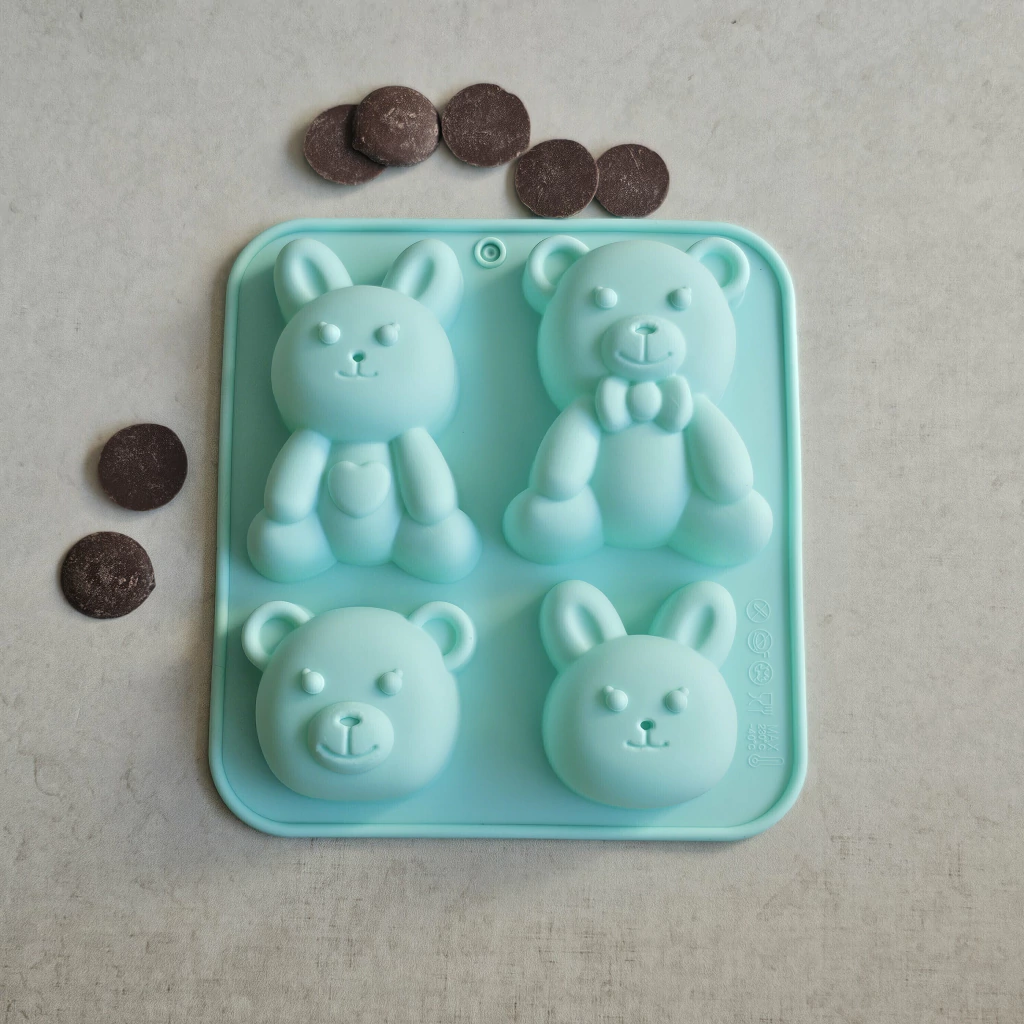 Dejá volar tu creatividad en la cocina con nuestro molde de silicona en forma de adorables osos y conejos. El molde tiene una medida de 15cm x 15cm