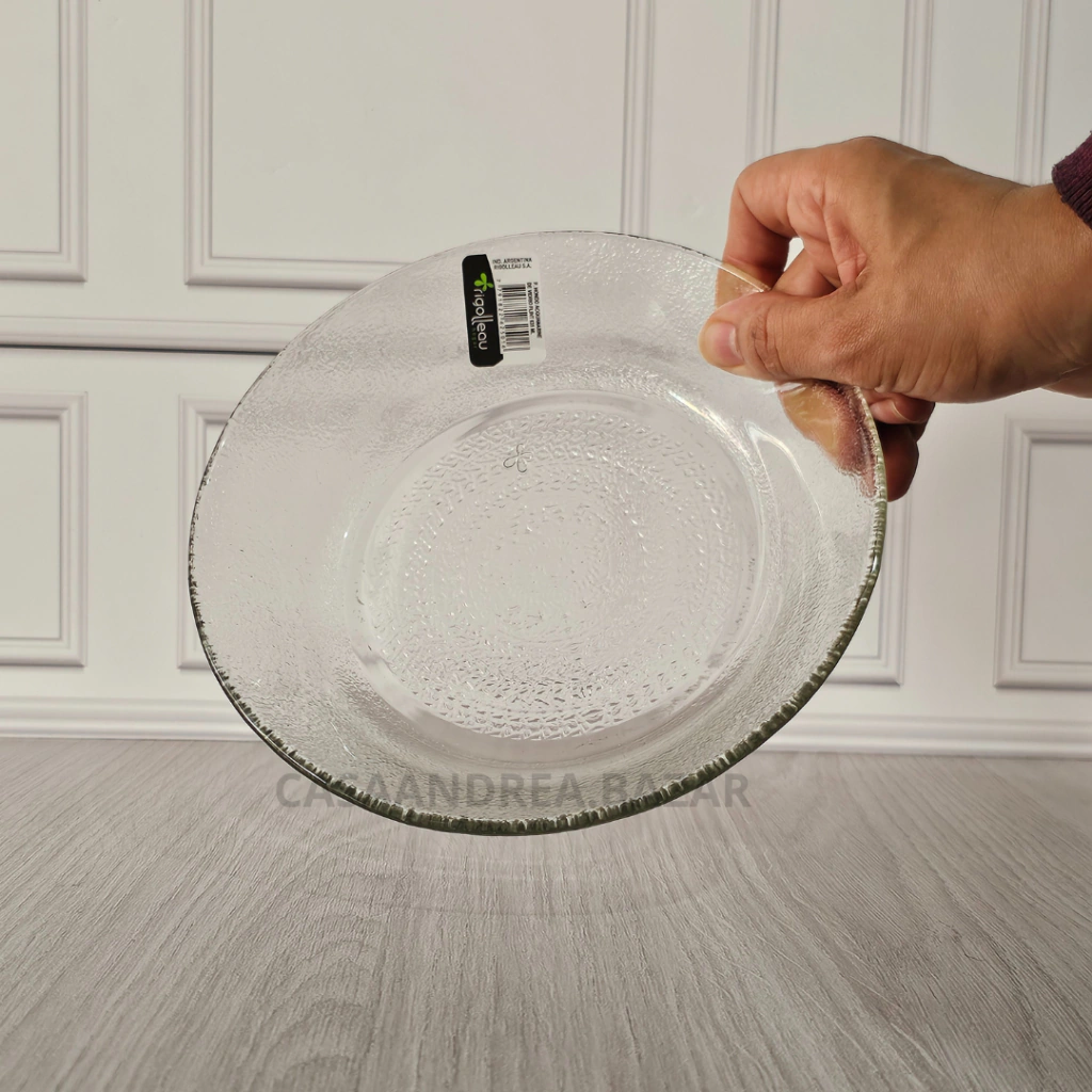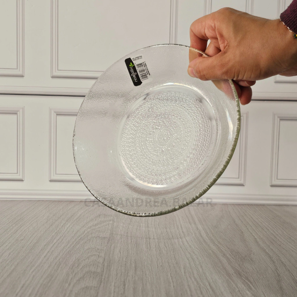 Plato playo de vidrio de 19 cm de diámetro, ideal para servir tus comidas con estilo y funcionalidad.