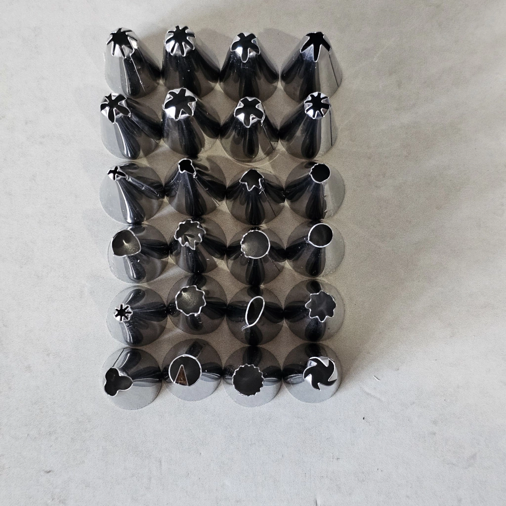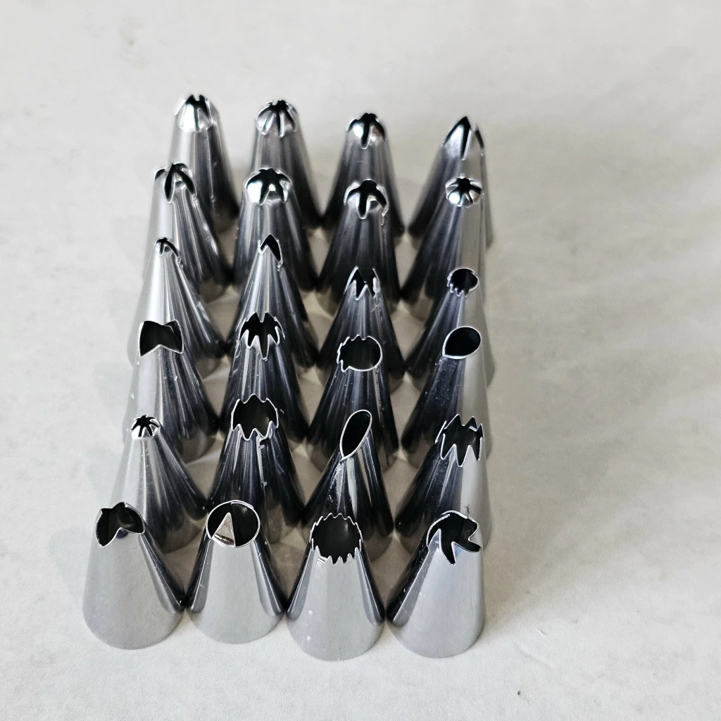Descubrí el Set de 24 picos de acero inoxidable junto a 3 cuplas ideales para tu pastelería. Este conjunto profesional está diseñado para facilitar la decoración de tortas, cupcakes y postres con precisión y variedad.