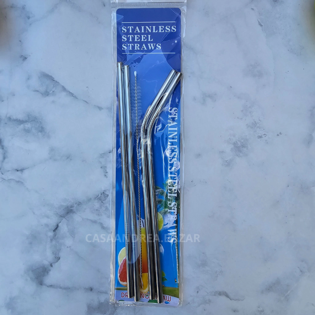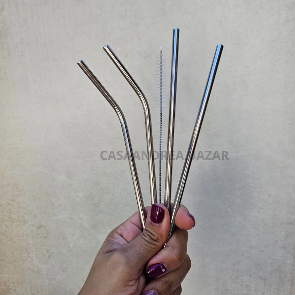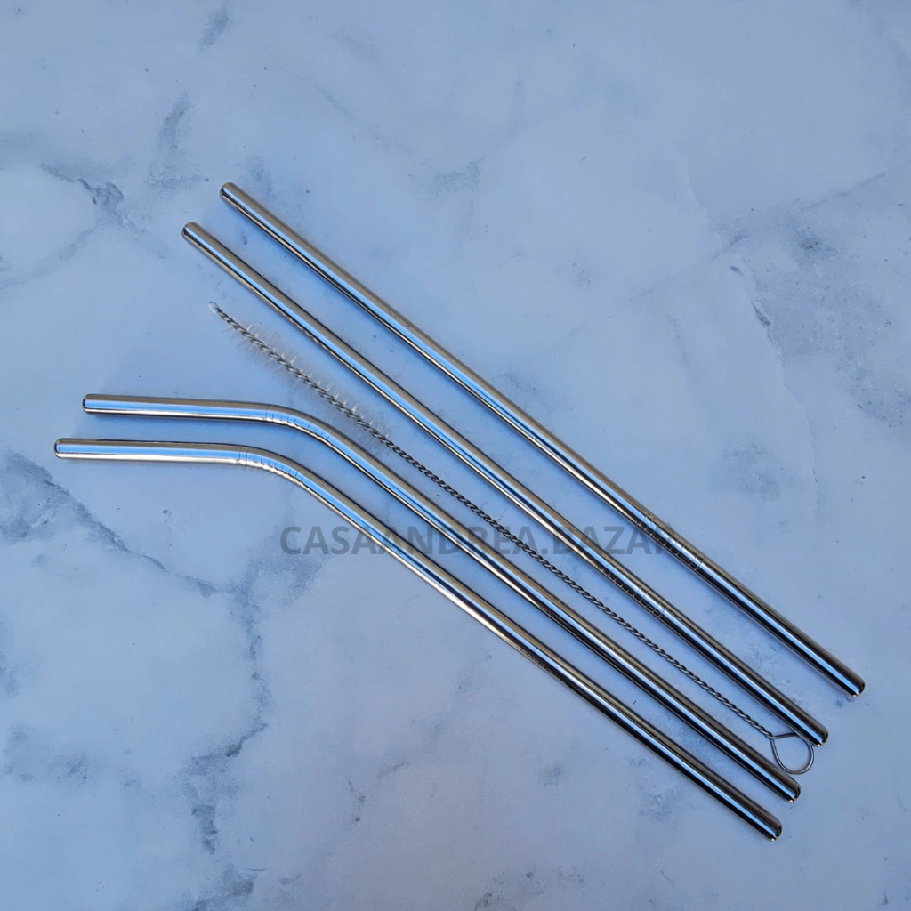 Este práctico set incluye cuatro sorbetes de metal de 22 cm de longitud, perfectos para disfrutar de tus bebidas favoritas de manera ecológica.