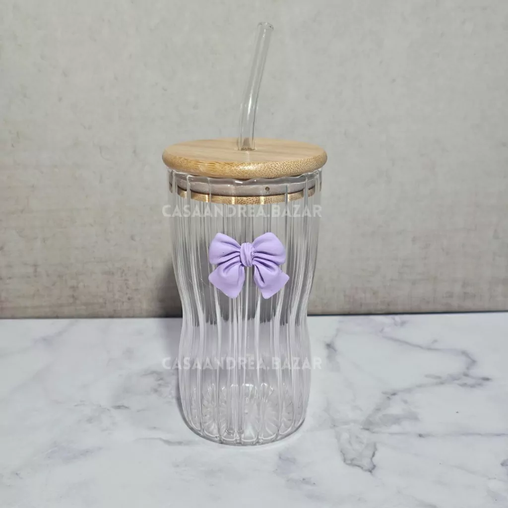 Diseño Atractivo: El aplique de moño añade un detalle encantador, convirtiendo este vaso en una pieza única para tus bebidas.